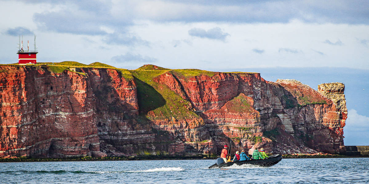 Rot die Felsen und reich die Vogelwelt: Helgoland, Deutschlands einzige Hochseeinsel, ist besonders im Oktober ein Hotspot für Vogelbeobachtungen. Die Experten an Bord schärfen Ihren Blick für die große Vielfalt, die Sie auf Ihren Logenplätzen an Deck bestens beobachten können. Bis zu 430 Arten wurden hier nachgewiesen – in ganz Mitteleuropa einzigartig. Ein beliebter Brutplatz und gleichzeitig eines der imposantesten norddeutschen Naturwahrzeichen ist die Lange Anna. Die Felsnadel ragt vor der Insel 47 m in den Himmel. Lässt es das Wetter zu, kommen die Zodiacs zum Einsatz. Expeditionsgefühl und ungeahnte Perspektiven erwarten Sie in den robusten Schlauchbooten. So müssen sich einst auch die Piraten gefühlt haben, denen die Insel als Schmugglerparadies gedient haben soll. Ein sehr bekannter Seeräuber, Klaus Störtebeker, wurde 1401 vor Helgoland gefangen genommen. Ein tierischer Räuber der Meere ist die Kegelrobbe, die sich die Dünen mit Seehunden teilt. Mit bis zu 40 km/h jagt sie im Wasser nach Sardinen und Dorschen. Sie hingegen suchen nach spektakulären Panoramen: bei einem Spaziergang auf dem 2,8 km langen Klippenrandweg. An der frischen Nordsee-Luft schmeckt ein Fischbrötchen besonders gut.