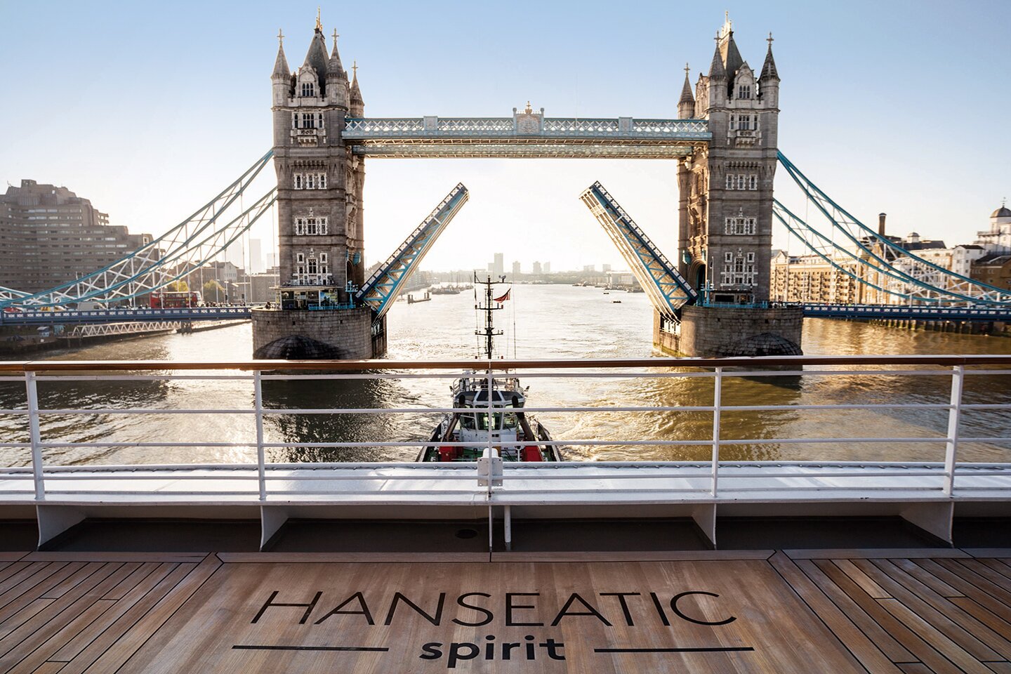 Hinweis Liegeplatz London: Die HANSEATIC spirit liegt zentral direkt hinter der Tower Bridge, was nur kleinen Schiffen möglich ist. Dies ist behördlich bestätigt, wobei sich die britischen Behörden vorbehalten, den Liegeplatz in London kurzfristig zu ändern.