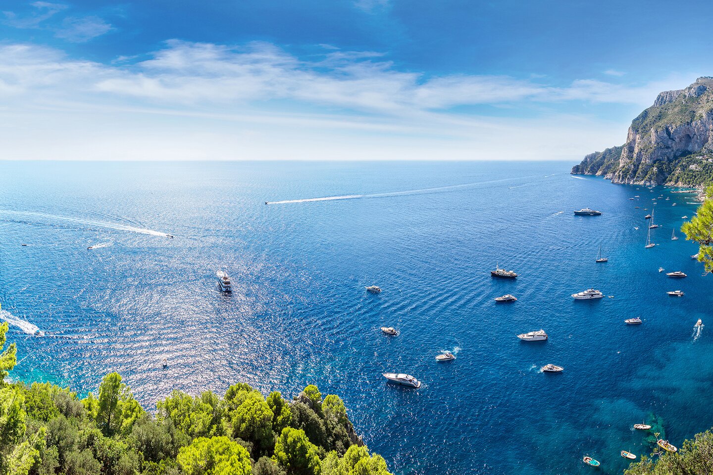 Seit Jahrhunderten zieht Capri die Reichen und Schönen an, ein Ort voller Geschichte und betörender Schönheit. Bereits im Jahr 26 n. Chr. machte Kaiser Tiberius das Eiland zu seinem Regierungssitz, und bis heute ist es ein beliebtes Urlaubsziel. Die Insel besteht aus den charmanten Gemeinden Capri und Anacapri, die sich ihren jeweils eigenen Charakter bewahrt haben. Im Zentrum von Anacapri führt eine Seilbahn hinauf zum 589 m hohen Monte Solaro, von wo aus sich ein atemberaubender Blick auf das azurblaue Meer, die geheimnisvollen Grotten und die zerklüfteten Felsen der Insel eröffnet. Capri verzaubert mit seiner Mischung aus Natur, Kultur und exklusiver Atmosphäre.