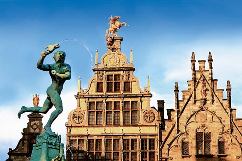 An den Ufern der Schelde entfaltet sich Antwerpen als eine der lebendigsten Hafen- und Kunststädte Belgiens. Seit dem Mittelalter sorgt Europas zweitgrößter Hafen für Wohlstand und verbindet die Stadt mit der Nordsee. Noch heute zeugen die prächtigen Gildehäuser am Grote Markt und der imposante Bahnhof vom Reichtum vergangener Zeiten. Im 17. Jh. wirkte hier Peter Paul Rubens – sein beeindruckendes Schaffen kann in seinem ehemaligen Wohnhaus und Atelier sowie in der gotischen Liebfrauenkathedrale bewundert werden. Die Kathedrale mit dem höchsten Kirchturm Flanderns gehört zum UNESCO-Welterbe. Auch das Diamantenviertel, berühmt für den Antwerp Cut, steht für höchste Qualität.