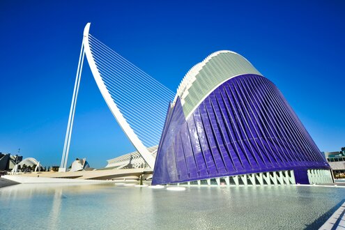 Valencia begeistert mit altertümlichen Gebäuden und moderner Architektur. Das Herz der Altstadt ist der Plaza de la Reina mit der imposanten Kathedrale, deren Glockenturm einen fantastischen Blick auf die Stadt bietet. Einen Bummel wert ist der Mercado Central, wo lokale Spezialitäten auf kulinarische Entdecker warten. Futuristisches Flair versprüht die Ciutat de les Arts i les Ciencies, ein beeindruckender Gebäude- und Parkkomplex von Santiago Calatrava und Felix Candela mit Oper, Wissenschaftsmuseum und Meeresaquarium.