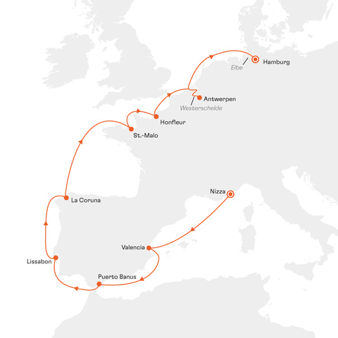 Beeindruckend vereint diese Reise spannende Städte voller Geschichte, kulinarische Köstlichkeiten und pure Lebenslust an Europas Westküste. Probieren Sie Spaniens Spezialitäten, genießen Sie den Charme französischer Landschaften, und staunen Sie über Antwerpens legendäre Kunstschätze.
