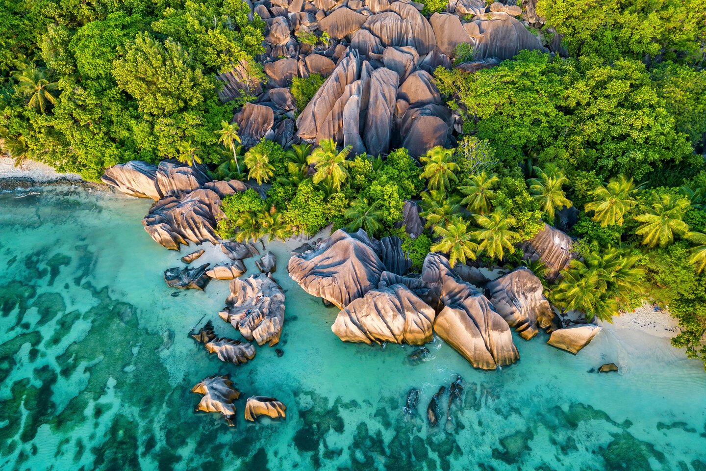 Weiße, von Palmenwäldern gesäumte Strände wie Anse Georgette und Anse Lazio sind die traumhaften Postkartenmotive von Praslin, der zweitgrößten Insel der inneren Seychellen. Besonders Anse Lazio, umgeben von beeindruckenden Granitfelsen, gilt als einer der schönsten Strände der Region. Das Landesinnere beherbergt den Nationalpark von Praslin mit dem UNESCO-Welterbe Vallée de Mai: Hier wachsen die ältesten Coco-de-Mer-Palmen der Seychellen, einige über 1.000 Jahre alt, die zusammen mit etwa 43 weiteren Pflanzenarten und seltenen Tieren wie dem Rabenpapagei ein einzigartiges Naturparadies bilden.