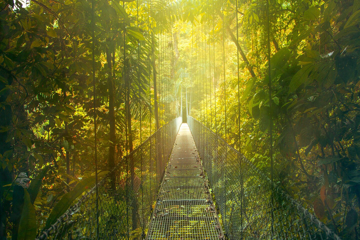 Auf Hängebrücken, die mitten durch den Regenwald führen, können Sie die tropische Flora aus einer ganz neuen Perspektive genießen. Mit etwas Glück erhaschen Sie auch einen Blick auf die verschiedenen Vogelarten, die hier leben.