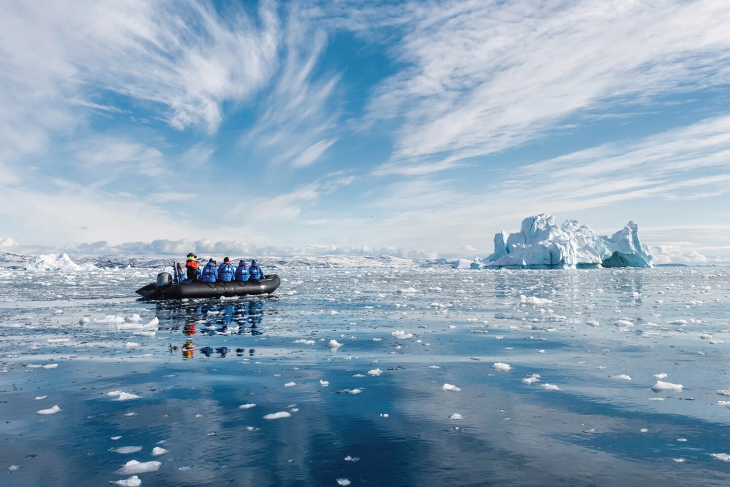 Die Disko Bucht sorgt für noch größere Erlebnismomente: Eisskulpturen in unterschiedlichsten Formen driften langsam durch das weite Areal. Genießen Sie dieses Naturschauspiel von Ihrem Logenplatz an Deck aus – oder seien Sie bei einer Zodiacfahrt mittendrin. Vom Sonnenlicht angestrahlt, leuchtet das Eis in einem faszinierenden Farbenspiel von Weiß bis Azurblau. Lassen es die Bedingungen vor Ort zu, geht es auch zum weltberühmten Ilulissat-Eisfjord. Hier erleben Sie, wie einer der aktivsten Gletscher der Welt majestätische Eisberge in die Weite des Fjords entlässt – ein unglaubliches UNESCO-Welterbe.