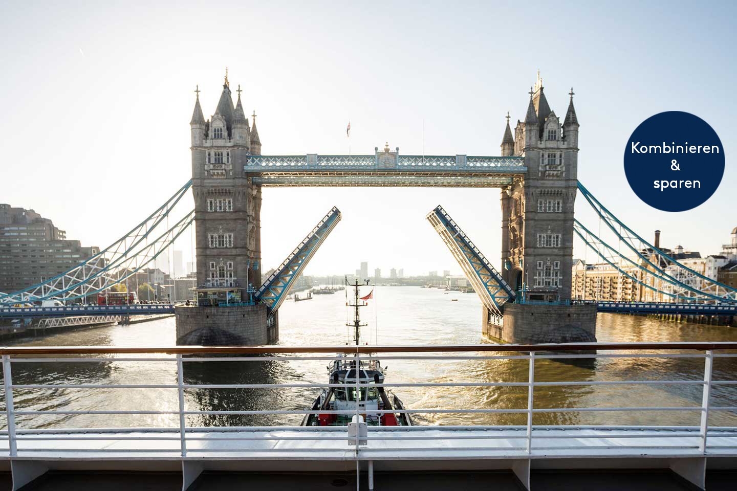 Westminster Abbey, Tower of London, Trafalgar Square, Covent Garden – die Vorfreude auf Bekanntes in neuem Licht und unentdeckte Seiten begleitet Sie bei Ihrem Besuch in London. Damit die HANSEATIC spirit ihren Liegeplatz direkt in der Stadt erreicht, öffnet sich die Tower Bridge, und Sie gleiten durch das Monument aus Zuckerbäckergotik hindurch. Ein Moment, der so nur mit einem kleinen Schiff möglich ist. „Welcome to London!“ – eine Stadt der Gegensätze, mit gotischen Kirchen neben Wolkenkratzern, Punks in Camden und eleganter Upperclass. Einmalig, lebendig und genussvoll. Die Panoramafahrt mit London Eye1 bietet zum Beispiel einen Überblick über die Facetten der Metropole. Könige und Schlösser gehören zu England wie die Royal Family in den Buckingham Palace. Beim Besuch von Windsor Castle1 erkunden Sie die größte Schlossanlage der Welt und einstige Lieblingsresidenz der Queen. Ganz andere Einblicke gewähren die Themse-Fahrt nach Greenwich und Royal Observatory1. In der Sternwarte können Sie auf dem Nullmeridian mit einem Bein in der britischen und mit dem anderen in der mitteleuropäischen Zeitzone stehen. Eine zeitlose Schönheit ist das weiße Queen’s House, ursprünglich Herrschaftsresidenz, später königliche Seefahrtsschule. Es eröffnen sich Ihnen atemberaubende Ausblicke bei der abendlichen Fahrt auf der Themse. Wenn die Skyline Londons hinter einer Flussbiegung langsam verschwindet, steigt bereits Ihre Vorfreude auf kommende Ziele.