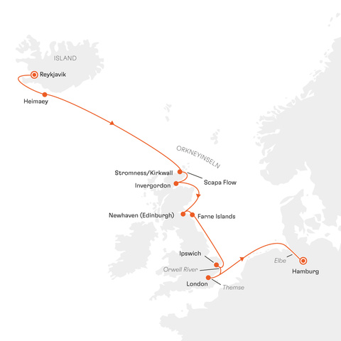 Rauer Charme umweht die Orkneyinseln. Der aus rund 70 Inseln bestehende Archipel bildet die spektakuläre Kulisse für Ihre Einblicke in die europäische Kulturgeschichte. Kirkwall auf Mainland ruft mit seiner im Jahr 1137 erbauten St.-Magnus-Kathedrale aus rot-gelbem Sandstein gebieterisch das Mittelalter ins Gedächtnis – eines der interessantesten Bauwerke im nördlichen Schottland. Enge Kopfsteinpflasterstraßen führen Sie zu traditionellen Geschäften und Pubs: Nutzen Sie die Zeit für einen individuellen Bummel. Kirkwall ist auch ein idealer Ausgangspunkt, um die Umgebung zu erkunden, wie prähistorische Stätten, zerklüftete Küsten und sanfte Hügellandschaften.