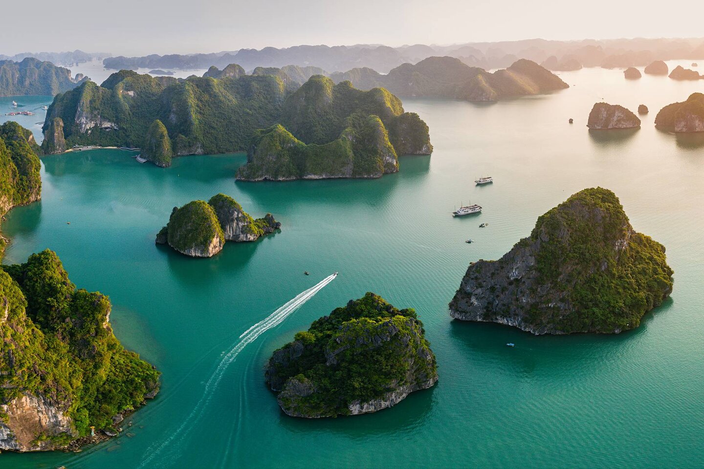 Genießen Sie eine der schönsten Passagen der Welt, wenn Ihr Schiff langsam durch die Ausläufer der Halong Bucht fährt. Mit ihren rund 2.000 Inseln bildet sie einen landschaftlichen Höhepunkt Ihrer Reise. In Jahrmillionen formte Korrosion die Kalkfelsen zu fantastischen Gebilden mit Höhlen und Grotten. Oder Sie glauben die Legende, dass hier ein Drache ins Meer stieg, um das Land vor Feinden zu schützen: Er warf Perlen ins Wasser, die zu Felsen wurden und den Eindringlingen die Durchfahrt versperrten. Mythen und magisches Gefühl werden Sie beim Kreuzen durch die zum UNESCO-Welterbe zählende Inselwelt begleiten. Betrachten Sie von den vielen offenen Decksflächen aus in aller Ruhe dieses Naturwunder. Die fernöstliche Szenerie mit traditionellen Dschunken und Kalksteinformationen wird sich Ihnen für immer einprägen.
