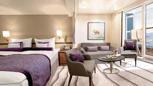 Private Momente genießen Sie an Bord in Ihrer eleganten Suite. Ausgestattet mit allen Annehmlichkeiten - und dem schönen Gefühl, überall auf der Welt zu Hause zu sein.