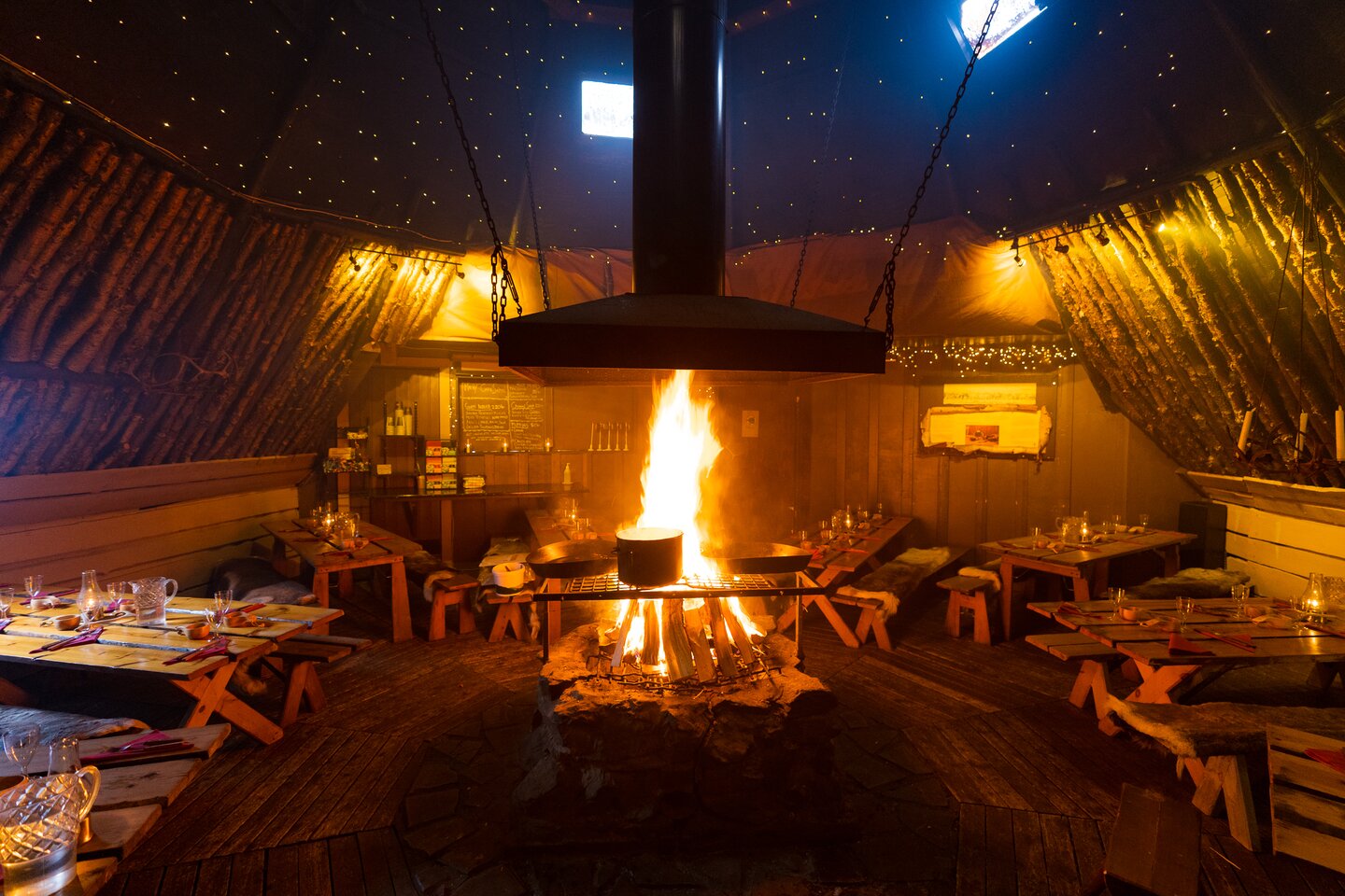 Hier liegt eine Winterausrüstung (Overall, Stiefel, Handschuhe, Mütze und Sturmhaube) für Sie bereit. Warm angezogen, begeben Sie sich zum Mittagessen in ein Lavvu-Zelt auf dem Hotelgelände. Im Anschluss checken Sie im Hotel ein und beziehen für die kommende Nacht ein Zimmer im warmen Teil des Hotels.