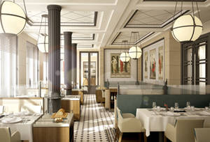 7.500 Quadratmeter öffentlicher Bereich wird auf der EUROPA 2 ausgestattet. Hapag-Lloyd Kreuzfahrten, die Architekten und Werft prüft die Modelle der Bereiche.