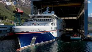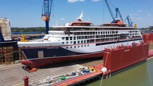 Erstmals Wasser unterm Kiel: Die HANSEATIC spirit, der letzte Neubau der neuen Expeditionsklasse, hat ein erfolgreiches Hull Launching hinter sich.
