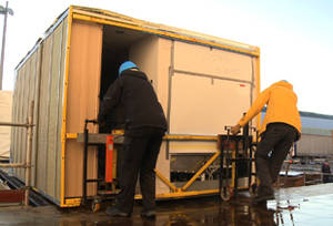 In der EUROPA 2 Werft werden die Suiten des Neubaus in der Kabinenfabrik produziert, mit einem Lift auf den unterschiedlichen Decks verteilt und eingebaut.
