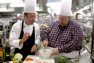 Die Küchenchefs Michael Hoffmann und Tobias Schnieders geben Einblick in die Karte des Spezialitätenrestaurants Hamptons an Bord der HANSEATIC nature.